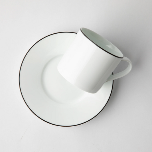 JENNA CLIFFORD - Premium Porcelain Cup & Saucer With Black Band (Set of 4)