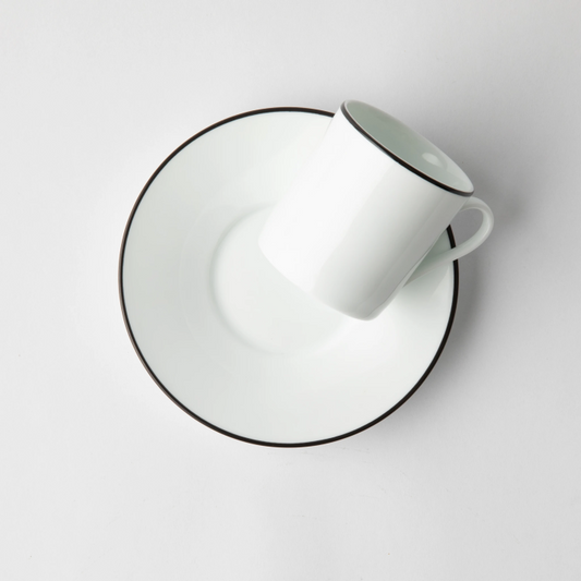 JENNA CLIFFORD - Premium Porcelain Espresso Cup & Saucer With Black Band (Set of 4)