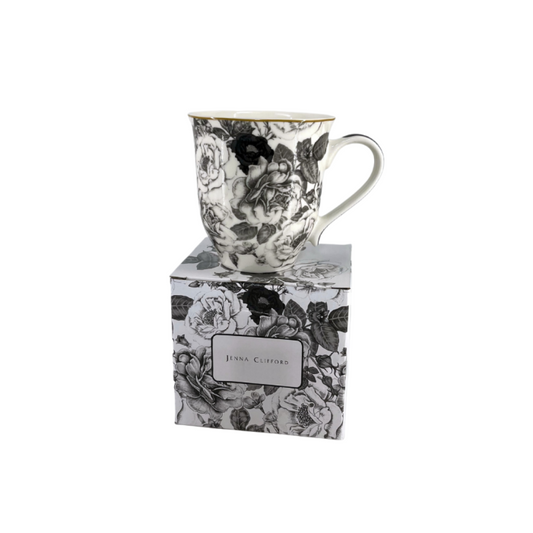 JENNA CLIFFORD - Black Rose Mug Set of 4 in Gift Box