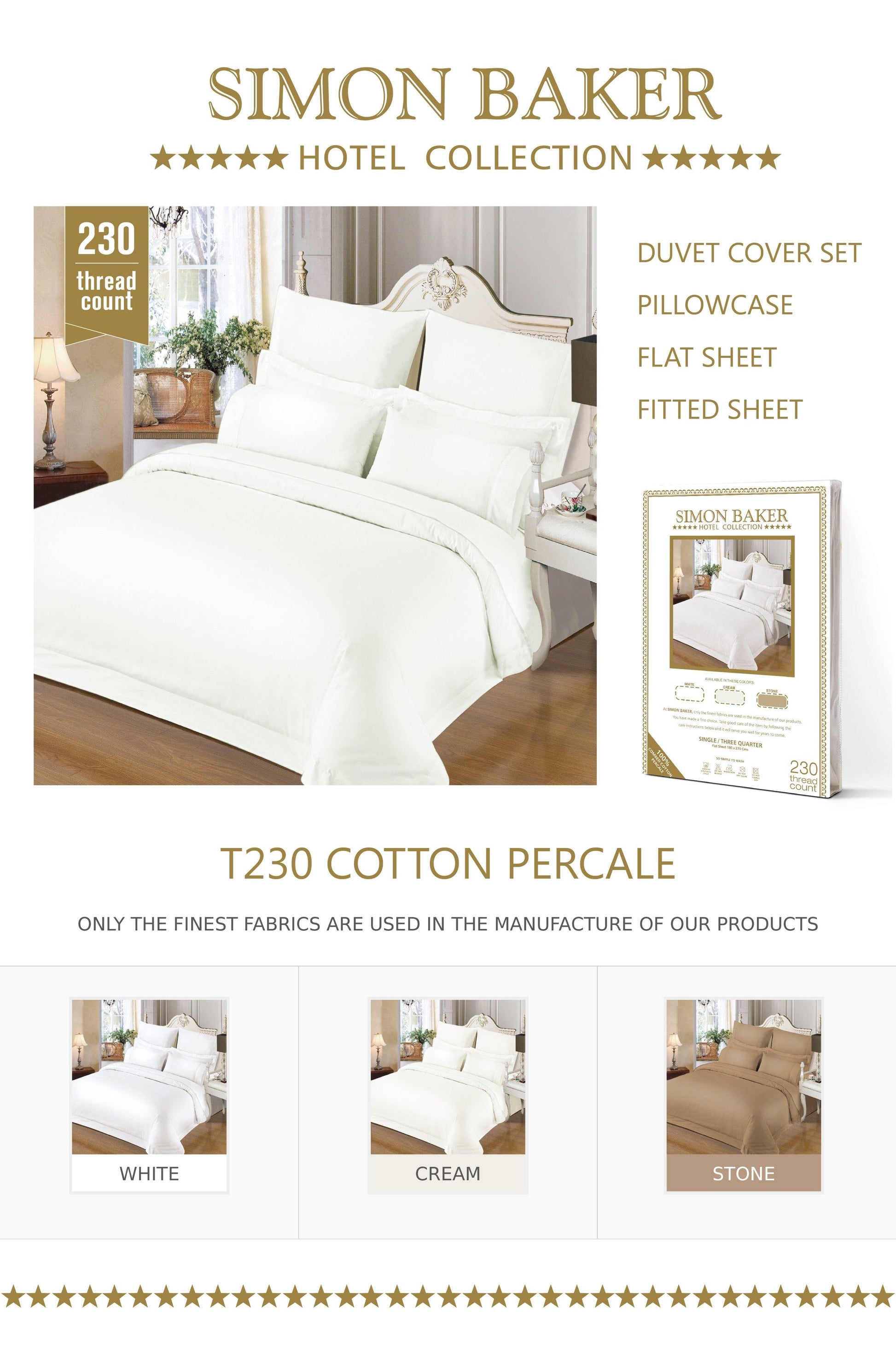 Simon Baker | 230 Thread Count Hotel Collection Duvet Cover Cream (Various Sizes)